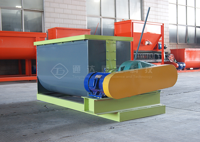 臥式攪拌機利用一根加裝螺旋葉的軸旋轉(zhuǎn),在輸送干灰等粉狀物料的同時加水?dāng)嚢,均勻加濕干灰粉狀物料,達到使加濕物料不冒干灰又不會滲出水滴的目的。
