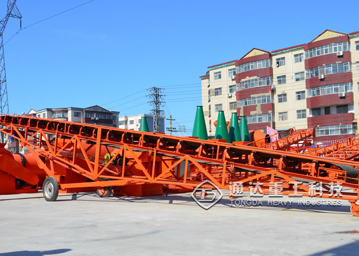 移動(dòng)皮帶輸送機(jī)是一種工效高,使用,機(jī)動(dòng)性好的連續(xù)輸送裝卸設(shè)備。主要用于裝卸地點(diǎn)經(jīng)常變更動(dòng)的場(chǎng)所,如:港口、碼頭、車站、煤場(chǎng)、倉庫、建筑工地、沙石料場(chǎng)、農(nóng)場(chǎng)等,用來短途運(yùn)輸及裝卸散料或單件重量100公斤以下的成件物品